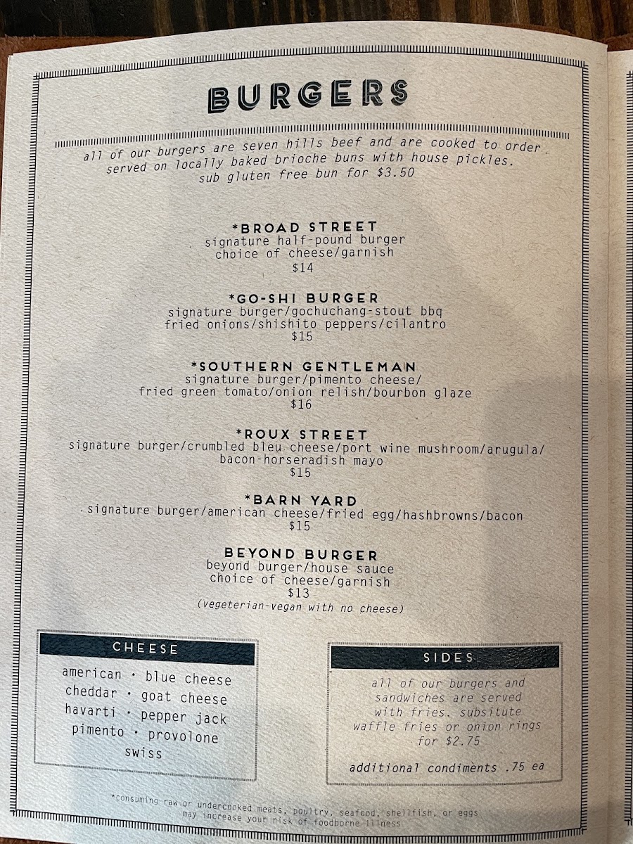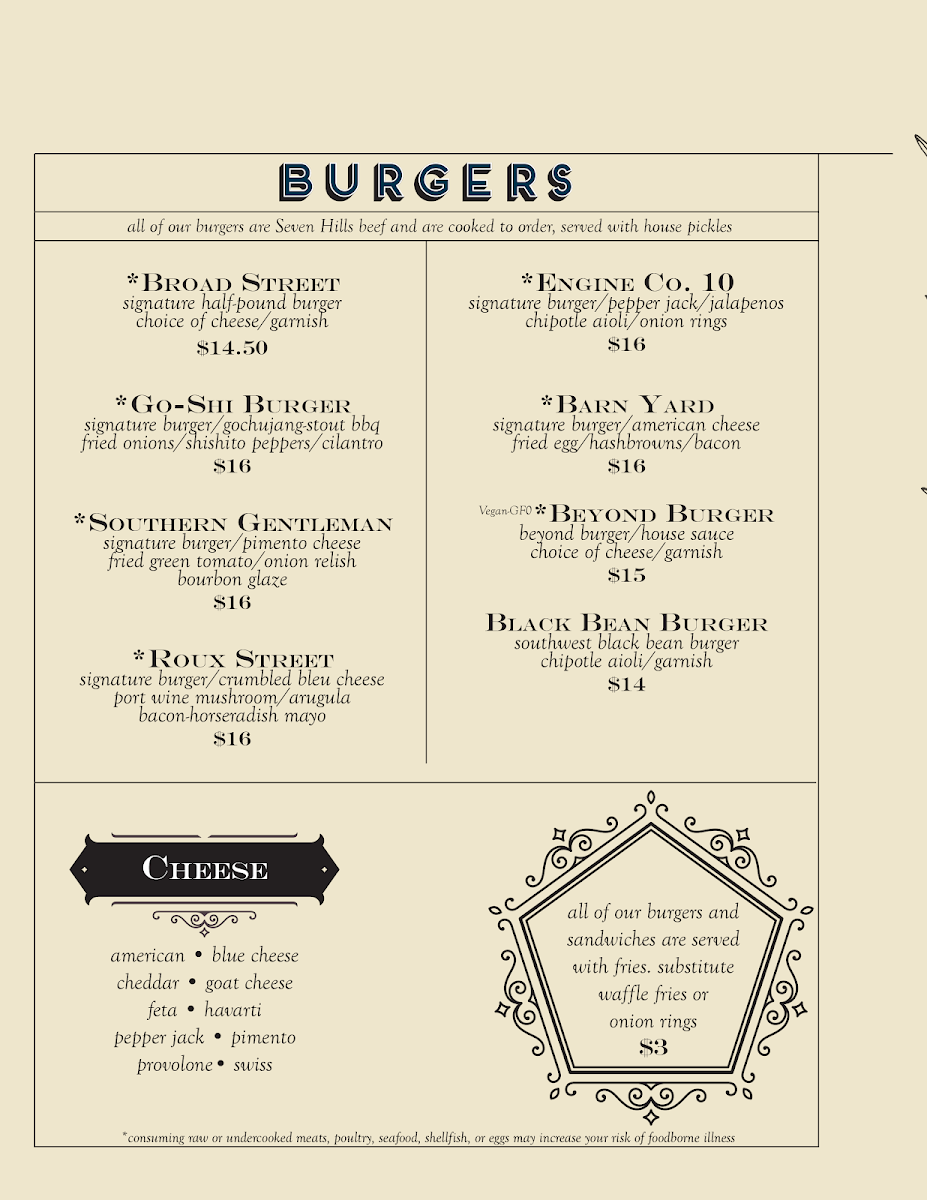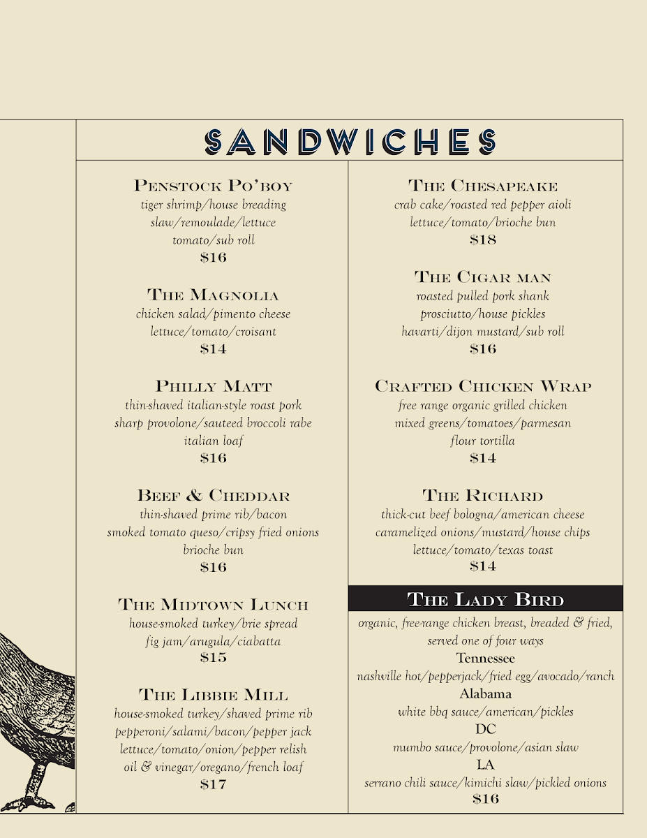 The menu also features shareable plates and elevated bar snacks, including Fried Oysters, Crab Dip, and Pulled Pork Egg Rolls. These dishes pair well with the carefully curated drink selection, which includes local beers, inventive cocktails like the Cold Brew Old Fashioned, and refreshing choices such as Strawberry Cider. Whether you’re settling in for a casual lunch or enjoying happy hour on the patio, the menu supports a welcoming, unpretentious atmosphere.
